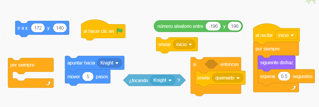 Crea un emocionante proyecto en Scratch donde un valiente caballero es perseguido por un feroz dragón.
